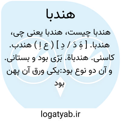 هندبا. [ هَِ دَ / دِ ] ( ع اِ ) هندب. کاسنی. هندباة. بَرّی بود و بستانی. و آن دو نوع بود:یکی ورق آن پهن بود نزدیک به کاهو و نوعی دیگر ورق آن باریک بود. طعم برّی آن تلخ و نوع نیکوی آن بستانی، تر شیرین بود. بهترین نوع آن شامی است که به یونانی انطوبیا خوانند. ( تحفه حکیم مؤمن ):