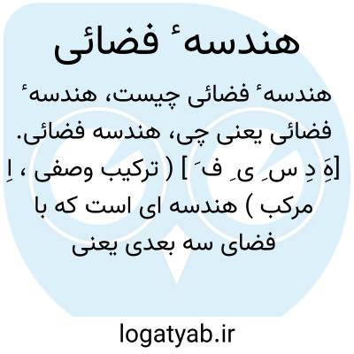 هندسه فضائی. [هَِ دِ س ِ ی ِ ف َ ] ( ترکیب وصفی، اِ مرکب ) هندسه ای است که با فضای سه بعدی یعنی فضائی که مورد درک واسطه ما است سر و کار دارد.