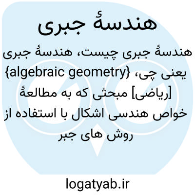 {algebraic geometry} [ریاضی] مبحثی که به مطالعۀ خواص هندسی اشکال با استفاده از روش های جبر مجرد می پردازد