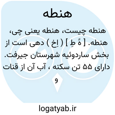 هنطه. [ هََ طِ ] ( اِخ ) دهی است از بخش ساردوئیه شهرستان جیرفت. دارای 55 تن سکنه، آب آن از قنات و محصول عمده اش غله و حبوب است. ( از فرهنگ جغرافیایی ایران ج 8 ).