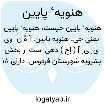 هنویه پایین. [ هََ ن ْ وی ی ِ ی ِ ] ( اِخ ) دهی است از بخش بشرویه شهرستان فردوس. دارای 18 تن سکنه، آب آن از قنات و محصول عمده اش غله،پنبه و ارزن است. ( از فرهنگ جغرافیایی ایران ج 9 ).
