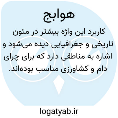 کاربرد این واژه بیشتر در متون تاریخی و جغرافیایی دیده میشود و اشاره به مناطقی دارد که برای چرای دام و کشاورزی مناسب بودهاند. اهمیت چنین مناطقی در دل سرزمینهای خشک عربستان، موجب شده بود تا نامهایی مانند هواپج در خاطره تاریخی و ادبی مردم آن سامان باقی بماند. بنابراین، این کلمه تنها یک نام جغرافیایی صرف نیست، بلکه گویای ویژگیهای طبیعی و اقتصادی آن دیار نیز هست.