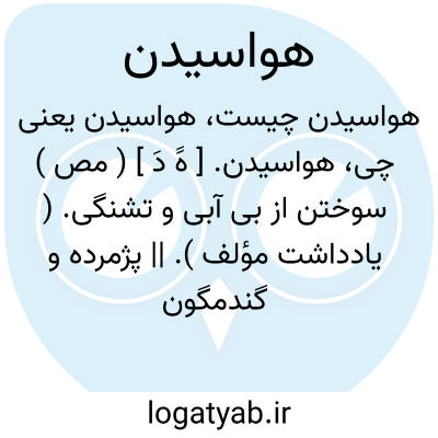 هواسیدن. [ هََ دَ ] ( مص ) سوختن از بی آبی و تشنگی. ( یادداشت مؤلف ). || پژمرده و گندمگون شدن. کم خون گردیدن چنانکه لب از بیماری. ( یادداشت مؤلف ).