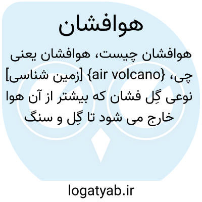 فرهنگستان زبان و ادب {air volcano} [زمین شناسی] نوعی گِل فشان که بیشتر از آن هوا خارج می شود تا گِل و سنگ
