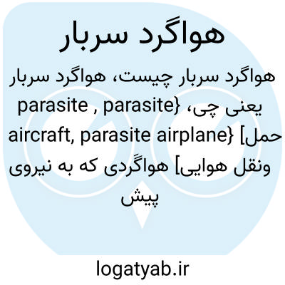 {parasite , parasite aircraft, parasite airplane} [حمل ونقل هوایی] هواگَردی که به نیروی پیش ران و نیروی برآر هواگَرد مادر متکی است و آن را یا با هواگَرد مادر یدک می کشند یا در خارج یا داخل بدنۀ آن سوار می کنند