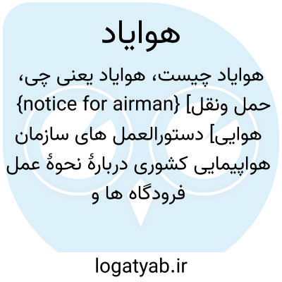 {notice for airman} [حمل ونقل هوایی] دستورالعمل های سازمان هواپیمایی کشوری دربارۀ نحوۀ عمل فرودگاه ها و خطوط هوایی و هواپیماها * این معادل صورت مقلوب و مخفف "یادداشت هوایی" است.
