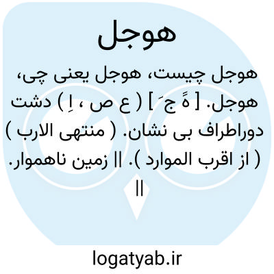 هوجل. [ هََ ج َ ] ( ع ص، اِ ) دشت دوراطراف بی نشان. ( منتهی الارب ) ( از اقرب الموارد ). || زمین ناهموار. || شتر تیزرو. ( منتهی الارب ). || ناقه شتاب زده. || شب دراز. || مرد آهسته و گران. ( منتهی الارب )( اقرب الموارد ). || زن فراخ فرج. ( منتهی الارب ). || زن تباهکار. || بقیه خواب و پینکی. || لنگر کشتی. || مرد دراز گول شتاب زده. || نوعی رفتار با فروهشتگی و استرخاء. ( منتهی الارب ) ( اقرب الموارد ).