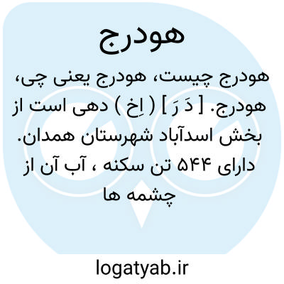 هودرج. [ دَ رَ ] ( اِخ ) دهی است از بخش اسدآباد شهرستان همدان. دارای 544 تن سکنه، آب آن از چشمه ها ومحصول عمده اش انگور، لبنیات، غله و کار دستی زنان آنجا قالی بافی است. ( از فرهنگ جغرافیایی ایران ج 5 ).