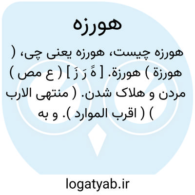 ( هورزة ) هورزة. [ هََ رَ زَ ] ( ع مص ) مردن و هلاک شدن. ( منتهی الارب ) ( اقرب الموارد ). و به تقدیم راء بر واو هم ( هَرْوَزَة ) آمده است.