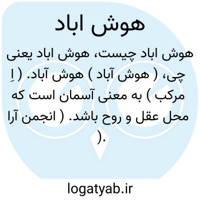لغت نامه دهخدا ( هوش آباد ) هوش آباد. ( اِ مرکب ) به معنی آسمان است که محل عقل و روح باشد. ( انجمن آرا ).