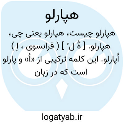 هپارلو. [ هَُ ل ُ ] ( فرانسوی، اِ ) اُپارلو. این کلمه ترکیبی از «اُ» و پارلو است که در زبان فرانسه به معنی بلندگو میباشد و صادق هدایت آن را بهمین معنی در فارسی به کار برده است «: جلو آنها بلندگو یا هپارلو و پرده های متحرک اعلان میکردند». ( سایه روشن صادق هدایت ص 11 ).