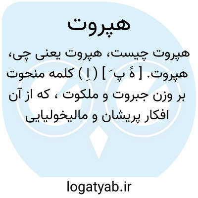 هپروت. [ هََ پ َ ] ( اِ ) کلمه منحوت بر وزن جبروت و ملکوت، که از آن افکار پریشان و مالیخولیایی بنگیان و حشیشیان را اراده کنند. ( یادداشت مؤلف ).