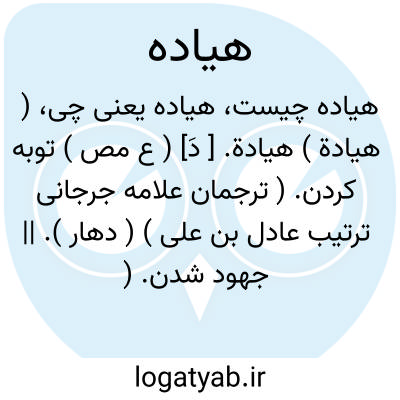 ( هیادة ) هیادة. [ دَ] ( ع مص ) توبه کردن. ( ترجمان علامه جرجانی ترتیب عادل بن علی ) ( دهار ). || جهود شدن. ( ترجمان القرآن ) ( تاج المصادر ) ( دهار ) ( تاج المصادر بیهقی ).