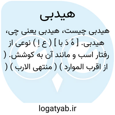 هیدبی. [ هََ دَ با ] ( ع اِ ) نوعی از رفتار اسب و مانند آن به کوشش. ( از اقرب الموارد ) ( منتهی الارب ) ( آنندراج ).