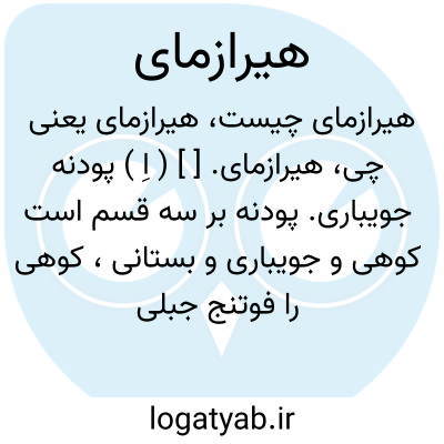 هیرازمای. [ ] ( اِ ) پودنه جویباری. پودنه بر سه قسم است کوهی و جویباری و بستانی، کوهی را فوتنج جبلی گویند و مر جویباری را هیرازمای خوانند و بوستانی را نعنع. ( الابنیه عن حقایق الادویه ). و در برهان قاطع این کلمه به صورت «هیزارما» آمده است. ( یادداشت مؤلف ).