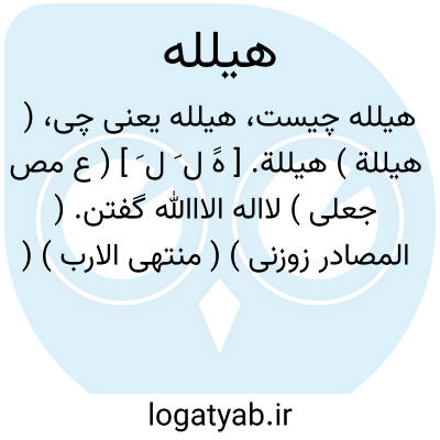 ( هیللة ) هیللة. [ هََ ل َ ل َ ] ( ع مص جعلی ) لااله الااﷲ گفتن. ( المصادر زوزنی ) ( منتهی الارب ) ( دهار ). و این مصدری است منحوت چون حوقلة که مصدری است و از لاحول ولاقوة الاباﷲ ریخته و تراشیده شده است. ( از اقرب الموارد ).