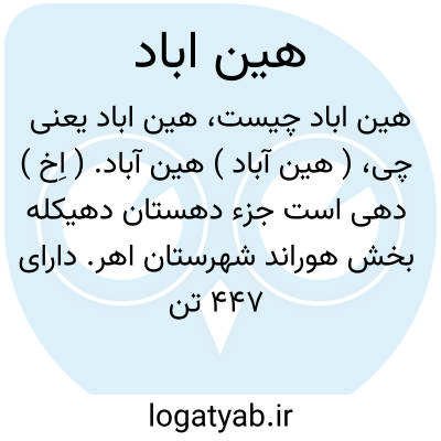 لغت نامه دهخدا ( هین آباد ) هین آباد. ( اِخ ) دهی است جزء دهستان دهیکله بخش هوراند شهرستان اهر. دارای 447 تن سکنه است. ( از فرهنگ جغرافیایی ایران ج 4 ).