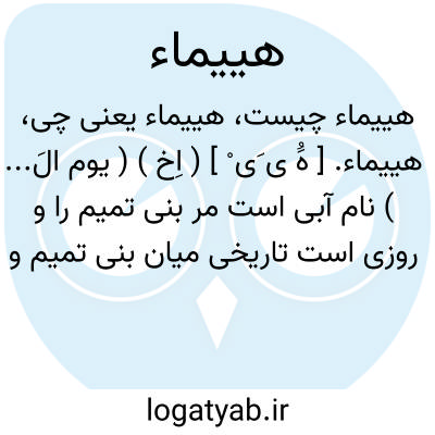 هییماء. [ هَُ ی َی ْ ] ( اِخ ) ( یوم الَ... ) نام آبی است مر بنی تمیم را و روزی است تاریخی میان بنی تمیم و بنی مجاشع. رجوع به مجمعالامثال میدانی شود.