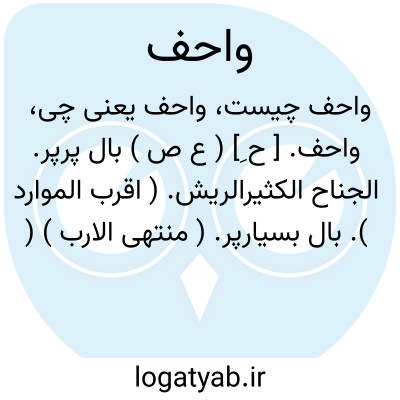 لغت نامه دهخدا واحف. [ ح ِ] ( ع ص ) بال پرپر. الجناح الکثیرالریش. ( اقرب الموارد ). بال بسیارپر. ( منتهی الارب ) ( آنندراج ) ( ناظم الاطباء ). || گیاه انبوه. ( آنندراج ) ( ناظم الاطباء ). || نبات شاداب. ( معجم البلدان ). || دلو کلان که دو دوال گوشه آن بریده و بدان آویزان باشد. ( اقرب الموارد ) ( منتهی الارب ) ( آنندراج ) ( ناظم الاطباء ). || ( اِخ ) نام جائی. ( آنندراج ) ( منتهی الارب ) ( معجم البلدان ) ( ناظم الاطباء ).