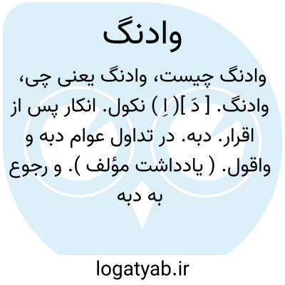 وادنگ. [ دَ ]( اِ ) نکول. انکار پس از اقرار. دبه. در تداول عوام دبه و واقول. ( یادداشت مؤلف ). و رجوع به دبه شود.