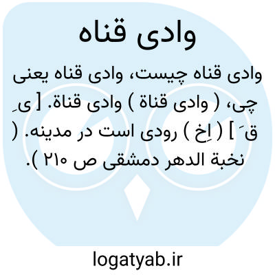 لغت نامه دهخدا ( وادی قناة ) وادی قناة. [ ی ِ ق َ ] ( اِخ ) رودی است در مدینه. ( نخبة الدهر دمشقی ص 210 ).