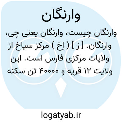 لغت نامه دهخدا وارنگان. [ رَ ] ( اِخ ) مرکز سیاخ از ولایات مرکزی فارس است. این ولایت 12 قریه و 40000 تن سکنه دارد. ( از جغرافیای سیاسی ایران تألیف کیهان 235 ).