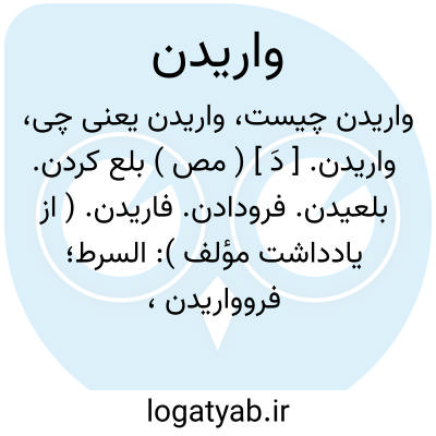 واریدن. [ دَ ] ( مص ) بلع کردن. بلعیدن. فرودادن. فاریدن. ( از یادداشت مؤلف ): السرط؛ فروواریدن، ای فروبردن به دهان. ( تاج المصادر بیهقی ). اوباریدن.