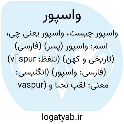 اسم: واسپور (پسر) (فارسی) (تاریخی و کهن) (تلفظ: vāspur) (فارسی: واسپور) (انگلیسی: vaspur)