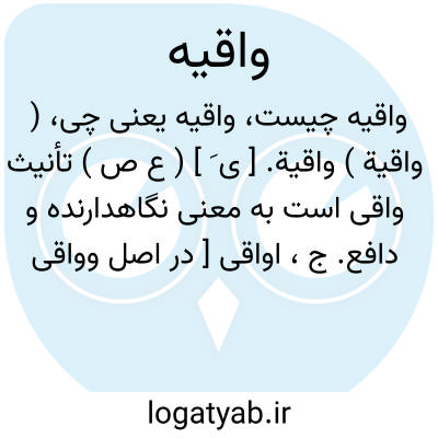 ( واقیة ) واقیة. [ ی َ ] ( ع ص ) تأنیث واقی است به معنی نگاهدارنده و دافع. ج، اواقی [ در اصل وواقی است در اجتماع واوین نخستین قلب به الف شده است ] و واقیات. رجوع به واقی شود. || ( مص ) نگه داشتن. ( از منتهی الارب ). رجوع به وقایة و وقی شود.