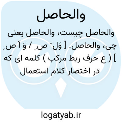 لغت نامه دهخدا والحاصل. [ وَل ْ ص ِ / وَ اَ ص ِ ] ( ع حرف ربط مرکب ) کلمه ای که در اختصار کلام استعمال میکنند. ( ناظم الاطباء ).