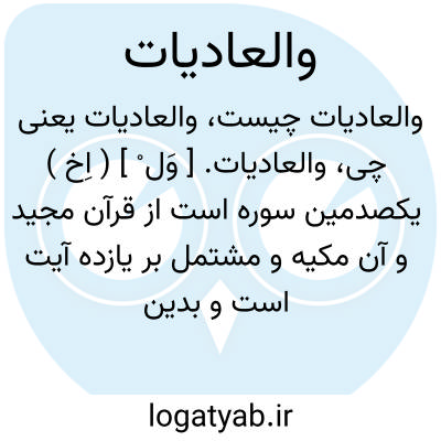 والعادیات. [ وَل ْ ] ( اِخ ) یکصدمین سوره است از قرآن مجید و آن مکیه و مشتمل بر یازده آیت است و بدین آیت آغاز شود: والعادیات ضبحا.