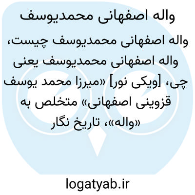 [ویکی نور] «میرزا محمد یوسف قزوینی اصفهانی» متخلص به «واله»، تاریخ نگار و شاعر ایرانی در سده یازدهم هجری است.