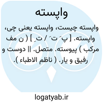 لغت نامه دهخدا واپسته. [ پ َ ت َ / ت ِ ] ( ن مف مرکب ) پیوسته. متصل. || دوست و رفیق و یار. ( ناظم الاطباء ).