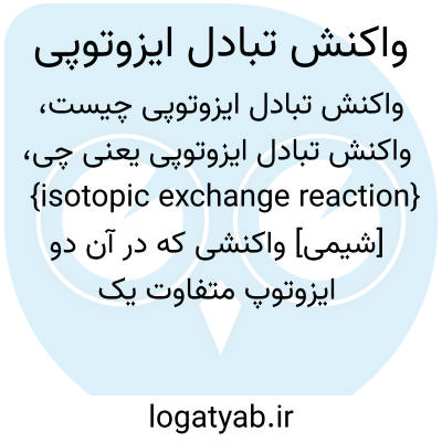 {isotopic exchange reaction} [شیمی] واکنشی که در آن دو ایزوتوپ متفاوت یک عنصر در یک مولکول یا مولکول های متفاوت جانشین هم می شوند