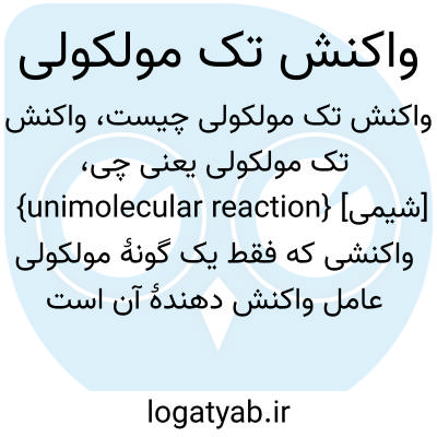 {unimolecular reaction} [شیمی] واکنشی که فقط یک گونۀ مولکولی عامل واکنش دهندۀ آن است