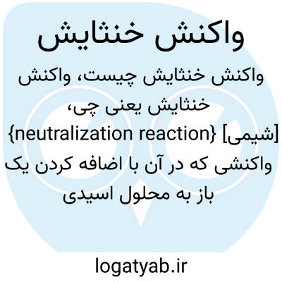 {neutralization reaction} [شیمی] واکنشی که در آن با اضافه کردن یک باز به محلول اسیدی یا یک اسید به محلول بازی محلول خنثی می شود