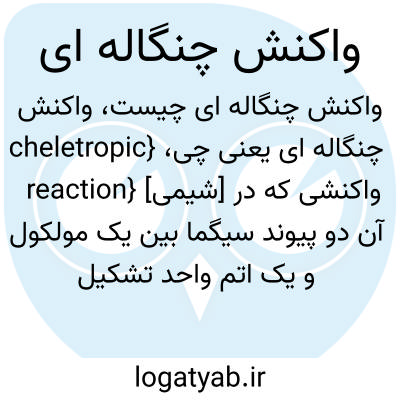 فرهنگستان زبان و ادب {cheletropic reaction} [شیمی] واکنشی که در آن دو پیوند سیگما بین یک مولکول و یک اتم واحد تشکیل می شود