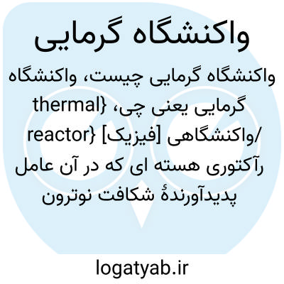 {thermal reactor} [فیزیک] واکنشگاهی/ رآکتوری هسته ای که در آن عامل پدیدآورندۀ شکافت نوترون گرمایی است متـ. رآکتور گرمایی