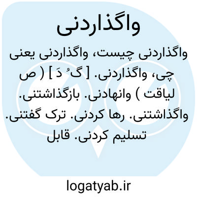 واگذاردنی. [ گ ُ دَ ] ( ص لیاقت ) وانهادنی. بازگذاشتنی. واگذاشتنی. رها کردنی. ترک گفتنی. تسلیم کردنی. قابل واگذاردن. رجوع به واگذاردن شود.