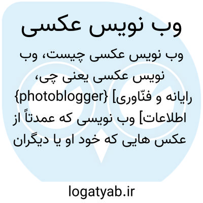 {photoblogger} [رایانه و فنّاوری اطلاعات] وب نویسی که عمدتاً از عکس هایی که خود او یا دیگران گرفته اند در وب نوشت استفاده می کند