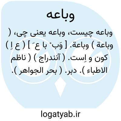 ( وباعة ) وباعة. [ وَب ْ با ع َ ] ( ع اِ ) کون و اِست. ( آنندراج ) ( ناظم الاطباء ). دبر. ( بحر الجواهر ). اِست. ( از اقرب الموارد )( آنندراج ) ( ناظم الاطباء ). || جان دانه کودک. ( از منتهی الارب ). آنجای از سر کودک که نرم و جنبان است. ( ناظم الاطباء ).