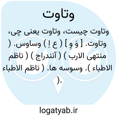لغت نامه دهخدا وتاوت. [ وَ وِ ] ( ع اِ ) وساوس. ( منتهی الارب ) ( آنندراج ) ( ناظم الاطباء ). وسوسه ها. ( ناظم الاطباء ).