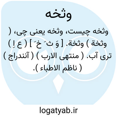 لغت نامه دهخدا ( وثخة ) وثخة. [ وَ ث َ خ َ ] ( ع اِ ) تری آب. ( منتهی الارب ) ( آنندراج ) ( ناظم الاطباء ).