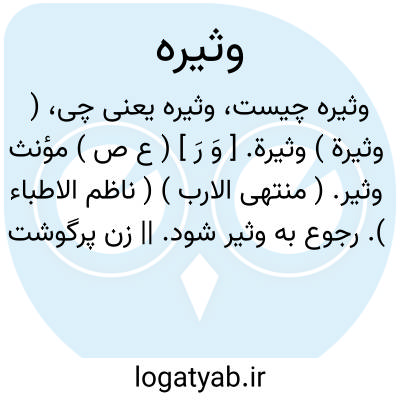 ( وثیرة ) وثیرة. [ وَ رَ ] ( ع ص ) مؤنث وثیر. ( منتهی الارب ) ( ناظم الاطباء ). رجوع به وثیر شود. || زن پرگوشت یا فربه بایسته همخوابگی. ( منتهی الارب ) ( ناظم الاطباء ). زن فربه پرگوشت سرخ و شایسته همخوابگی. ( ناظم الاطباء ). ج، وثائر. وِثار. ( آنندراج ) ( منتهی الارب ) ( ناظم الاطباء ).