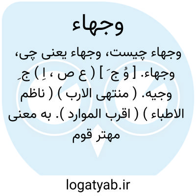 لغت نامه دهخدا وجهاء. [ وُ ج َ ] ( ع ص، اِ ) ج ِ وجیه. ( منتهی الارب ) ( ناظم الاطباء ) ( اقرب الموارد ). به معنی مهتر قوم و با قدر و منزلت. ( آنندراج ). رجوع به وجیه شود.