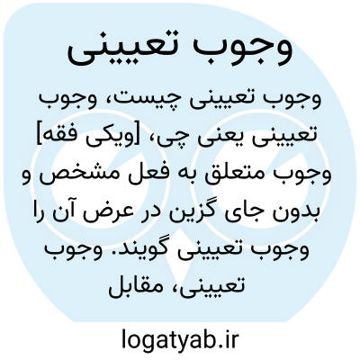 [ویکی فقه] وجوب متعلق به فعل مشخص و بدون جای گزین در عرض آن را وجوب تعیینی گویند.