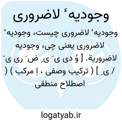 وجودیه لاضروریة. [ وُ دی ی َ ی ِ ض َ ری ی َ / ی ِ ] ( ترکیب وصفی، اِ مرکب ) ( اصطلاح منطقی ) ( قضیه ٔ... ) مطلقه عامه را نامند با قید لاضرورة به حسب ذات مانند کل انسان متنفس بالاطلاق العام لابالضرورة و آن مرکب باشد از مطلقه عامه و ممکنه عامه. ( کشاف اصطلاحات الفنون ). مثال موجبه آن: کل انسان ضاحک بالفعل لابالضرورة و ترکیب آن از موجبه مطلقه عامه و سالبه ممکنه ٔعامه. موجبه مطلقه عامه جزو اول آن است و سالبه ممکنه یعنی لاشی من الانسان بضاحک بالامکان این همان معنای لاضرورة است و مثال سالبه آن لاشی من الانسان بضاحک بالفعل لابالضرورة و ترکیب آن از سالبه مطلقه عامه است که همان جزو اول آن باشد و موجبه ممکنه عامه و آن معنای لاضرورة است. ( تعریفات سیدجرجانی ). رجوع به اساس الاقتباس و شمسیه و حاشیه ملا عبداﷲ شود.