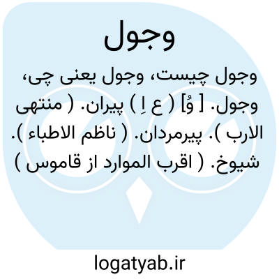 لغت نامه دهخدا وجول. [ وُ] ( ع اِ ) پیران. ( منتهی الارب ). پیرمردان. ( ناظم الاطباء ). شیوخ. ( اقرب الموارد از قاموس ) ( المنجد ). || دانایان و علماء و حکماء. ( ناظم الاطباء ).