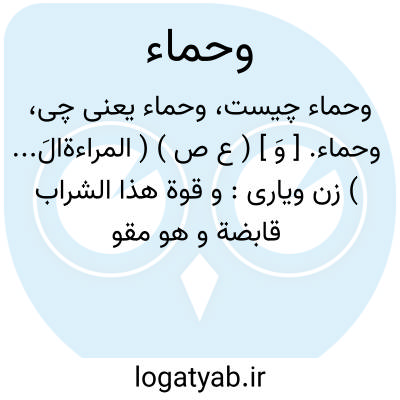 وحماء. [ وَ ] ( ع ص ) ( المراءةالَ... ) زن ویاری: و قوة هذا الشراب قابضة و هو مقو للمعدةالمسترخیة و المراءة الوحماء. ( ابن بیطار ج 1 ص 71 ).