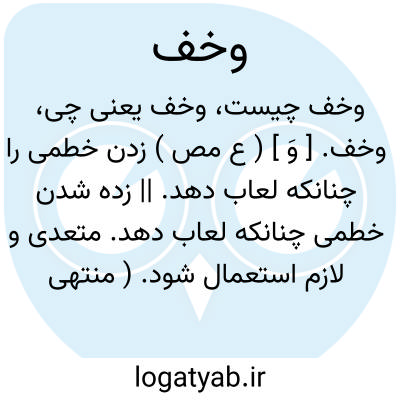 وخف. [ وَ ] ( ع مص ) زدن خطمی را چنانکه لعاب دهد. || زده شدن خطمی چنانکه لعاب دهد. متعدی و لازم استعمال شود. ( منتهی الارب ) ( آنندراج ) ( ناظم الاطباء ). || به زشتی یاد کردن کسی را. ( منتهی الارب ) ( آنندراج ) ( از ناظم الاطباء ). و فعل آن از باب ضرب آید. ( منتهی الارب ) ( ناظم الاطباء ).